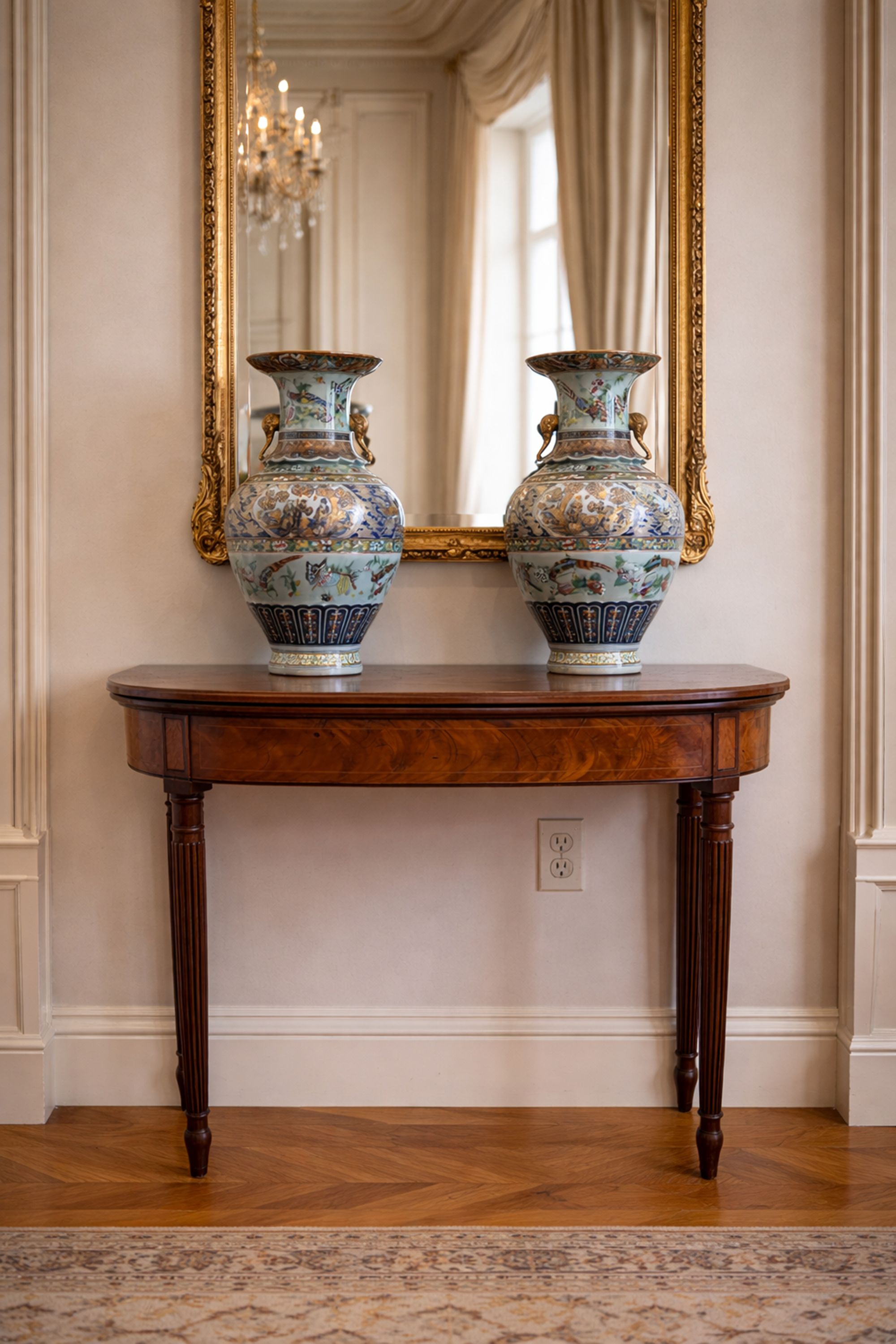 Provenance: descended in the family of Nathaniel Kinsman of Salem, Massachusetts, a sea captain engaged in the China Trade. He commanded the Australia, teh Fanny, and the Trent, all of Salem. His Chinese export business was so substantial that he built an elaborate residence at Macao with was painted by Lam Qua, probably the best mid -19th century Chinese painter working for the western community. Lam Qua also painted a portrait of Nathaniel Kinsman’s daughter, as recorded in his papers at the Peabody-Essex Institute, according to the The Decorative Arts of The China Trade, by Carl Crossman, 1991, p. 89.