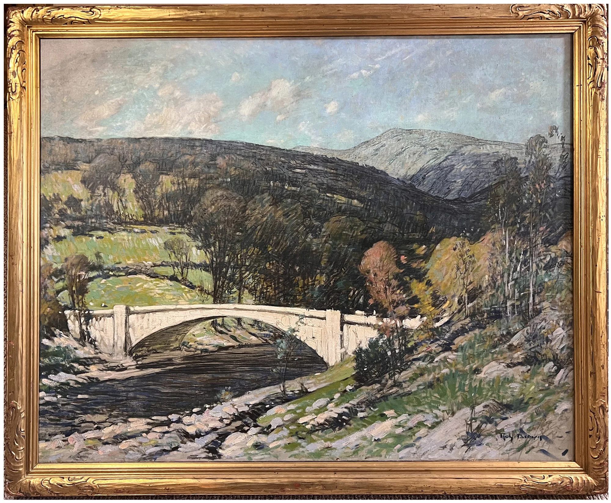 Roy Henry Brown Landscape with Bridge Oil on Canvas, c. mid 20th century